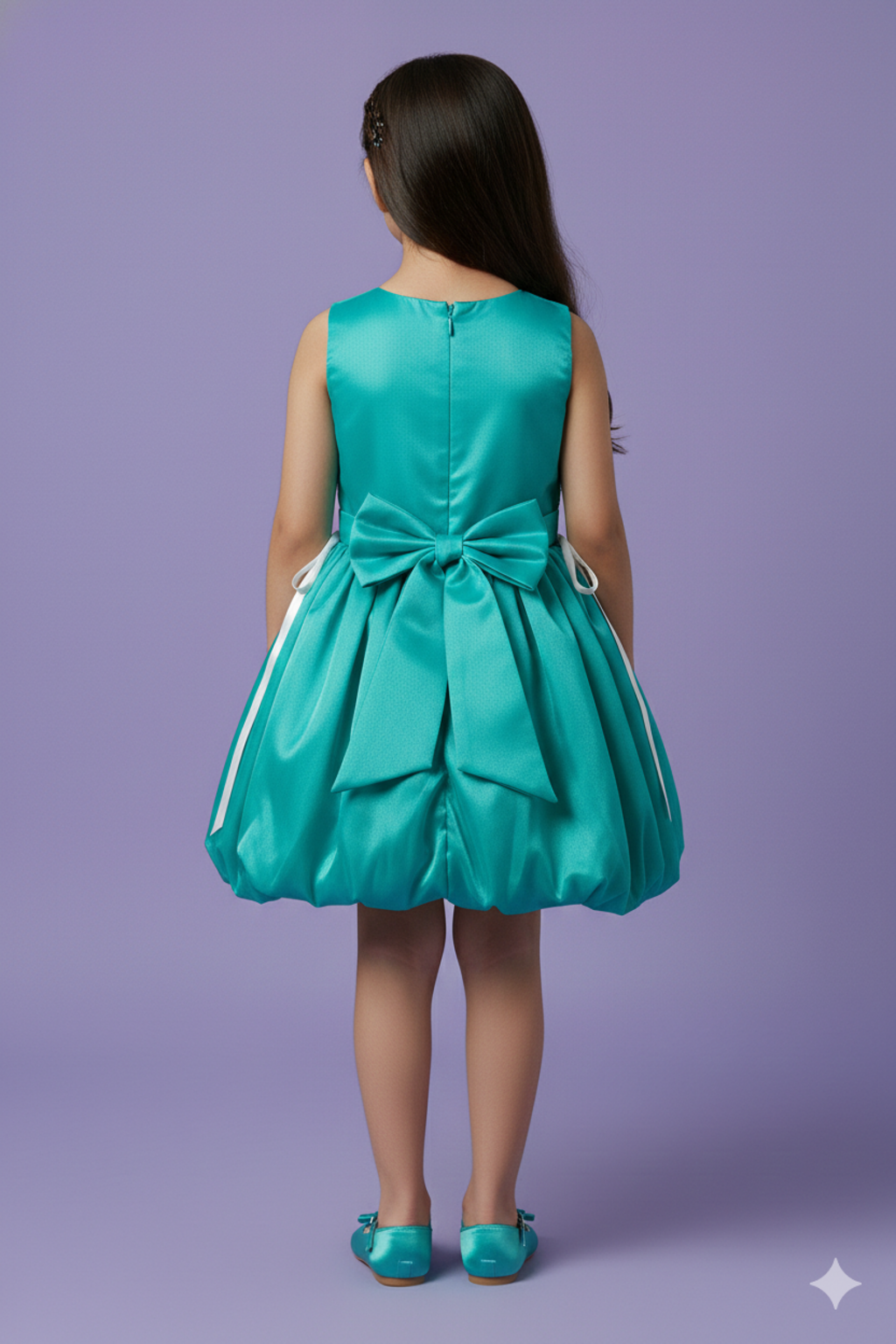 - Pattern: Elegant Solid-Coloured Frock with Flared Bubble Skirt & Stylish Back Bow