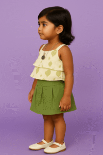 Little Blossom Green Skirt & Ruffle Top Set