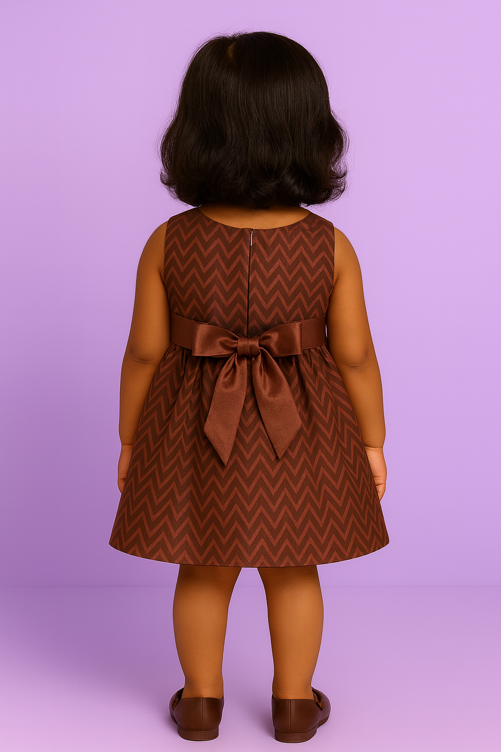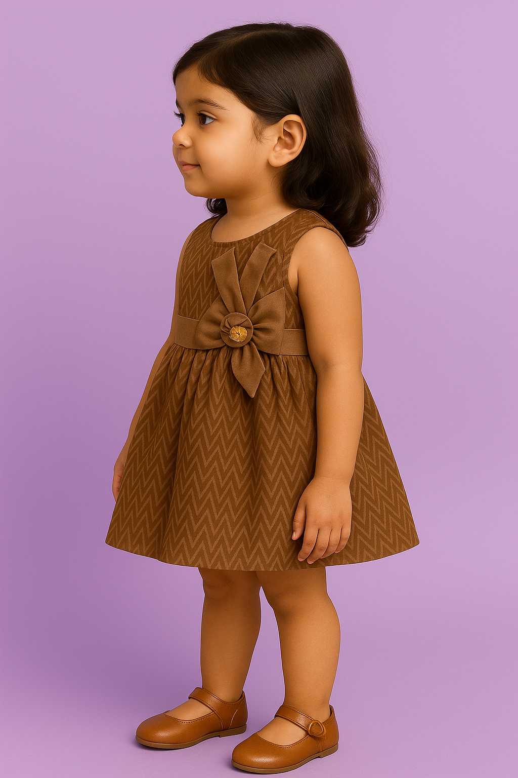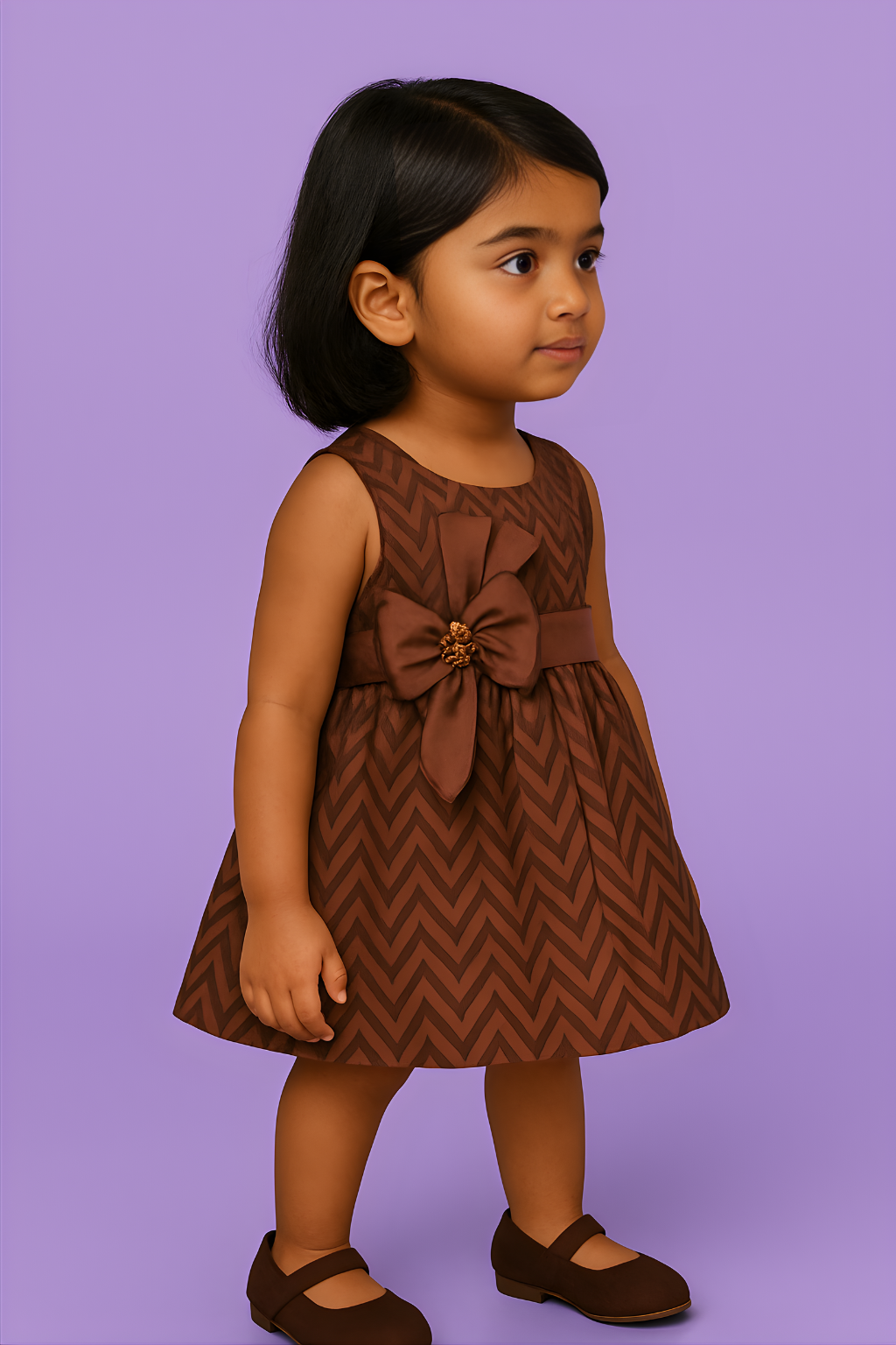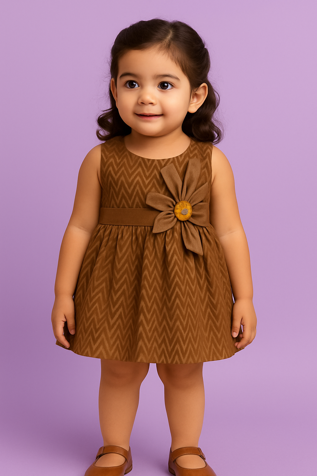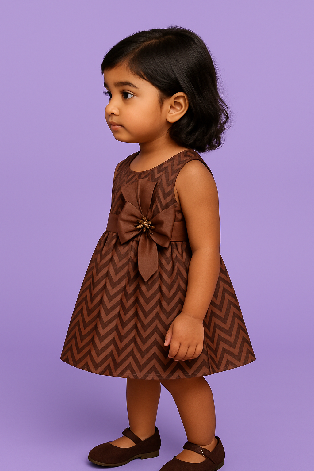 Chocolate Charm Baby Frock Brown Chevron