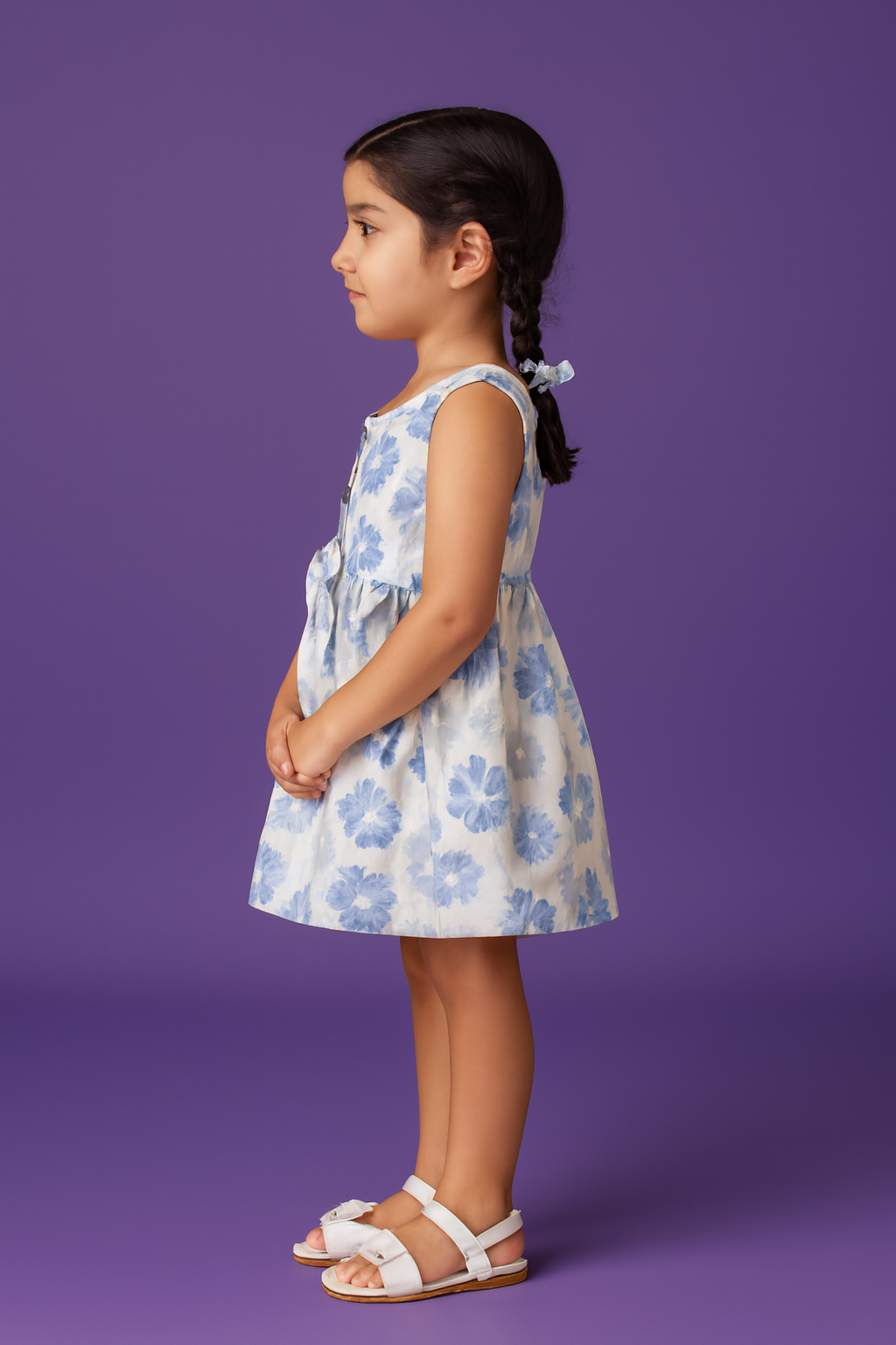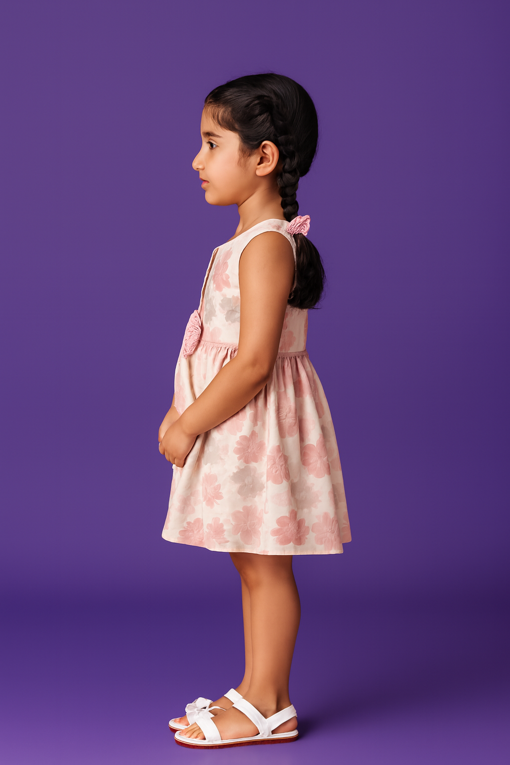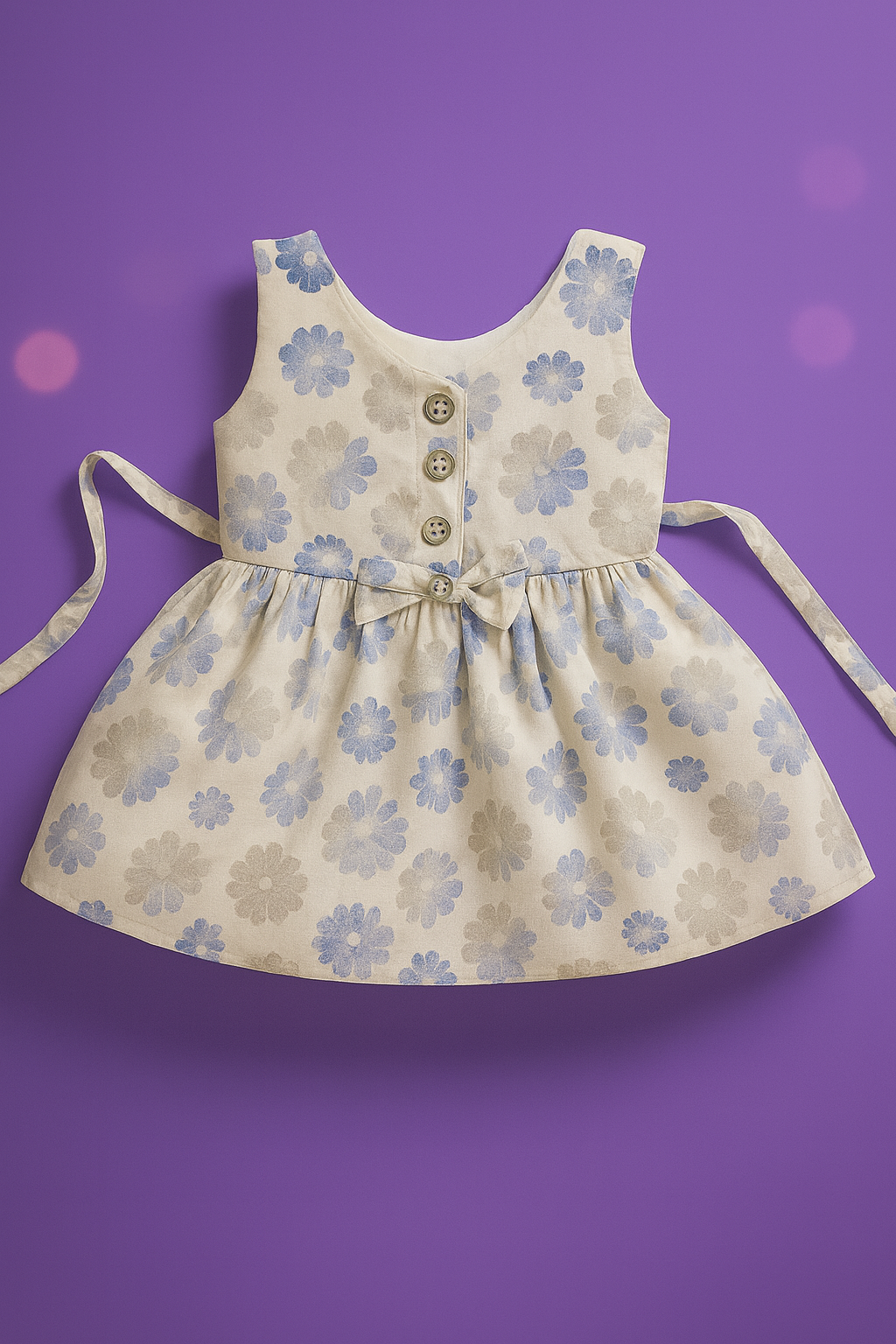 Dress your little princess in the sweet elegance of the Blush Blossom Sleeveless Floral Frock by Riddhima Fasion. Crafted from lightweight and breathable fabric, this frock features a pastel floral print in soft shades of blush pink and beige, enhanced with front buttons and a dainty bow at the waist. The sleeveless design ensures comfort and ease, making it a delightful choice for warm days.