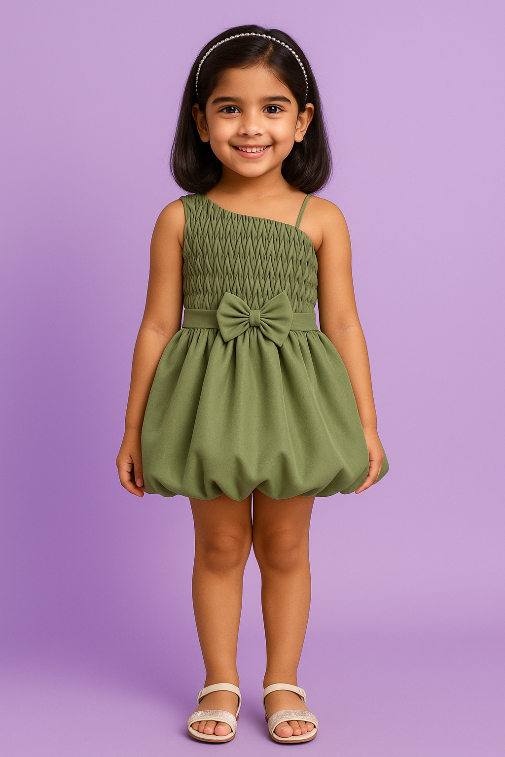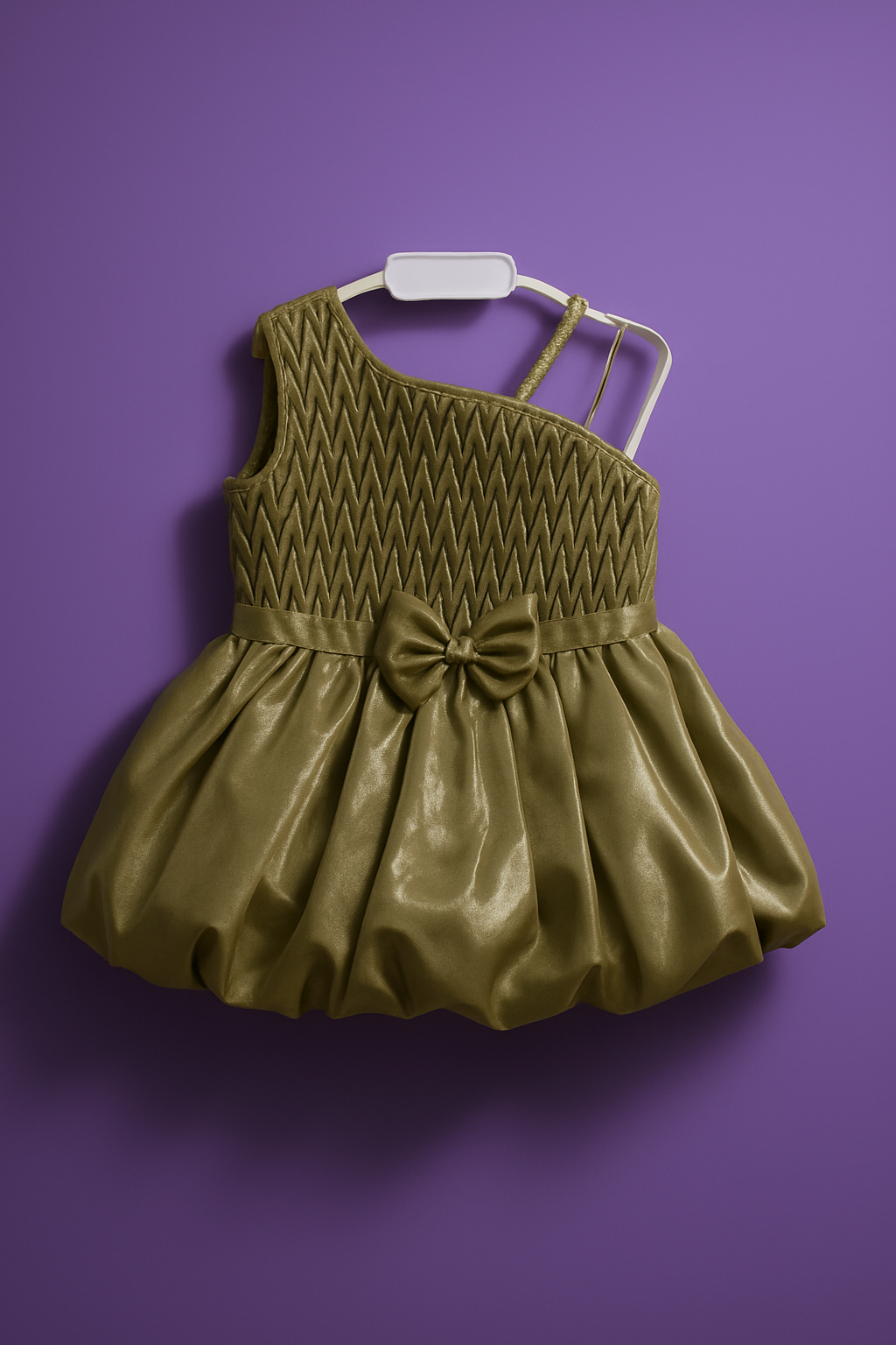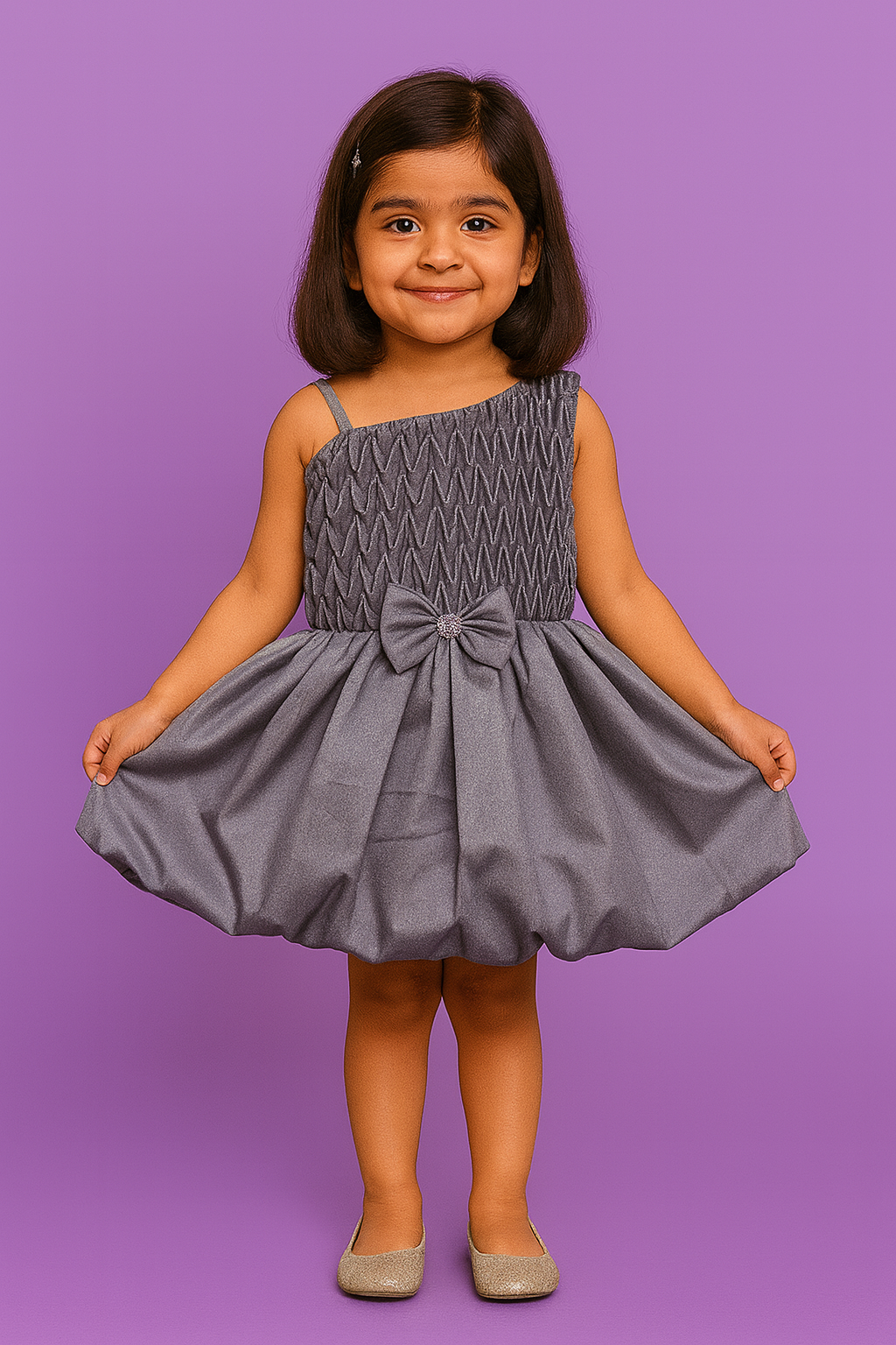 Dress your little princess in elegance with this stunning Mauve One-Shoulder Party Dress from Riddhima Fasion.