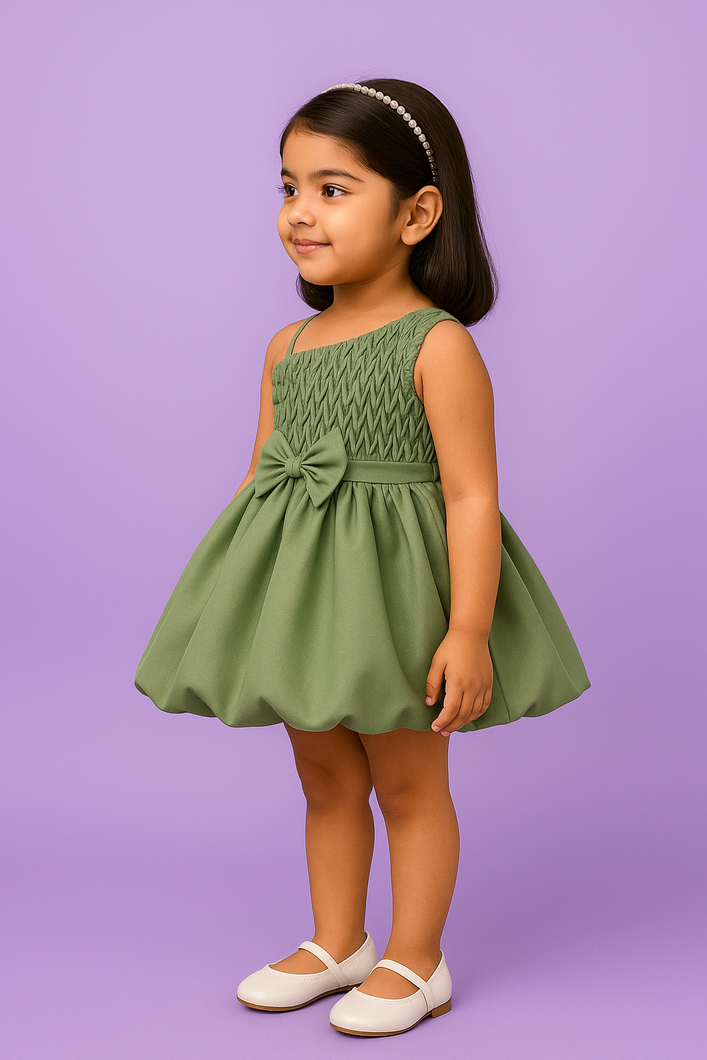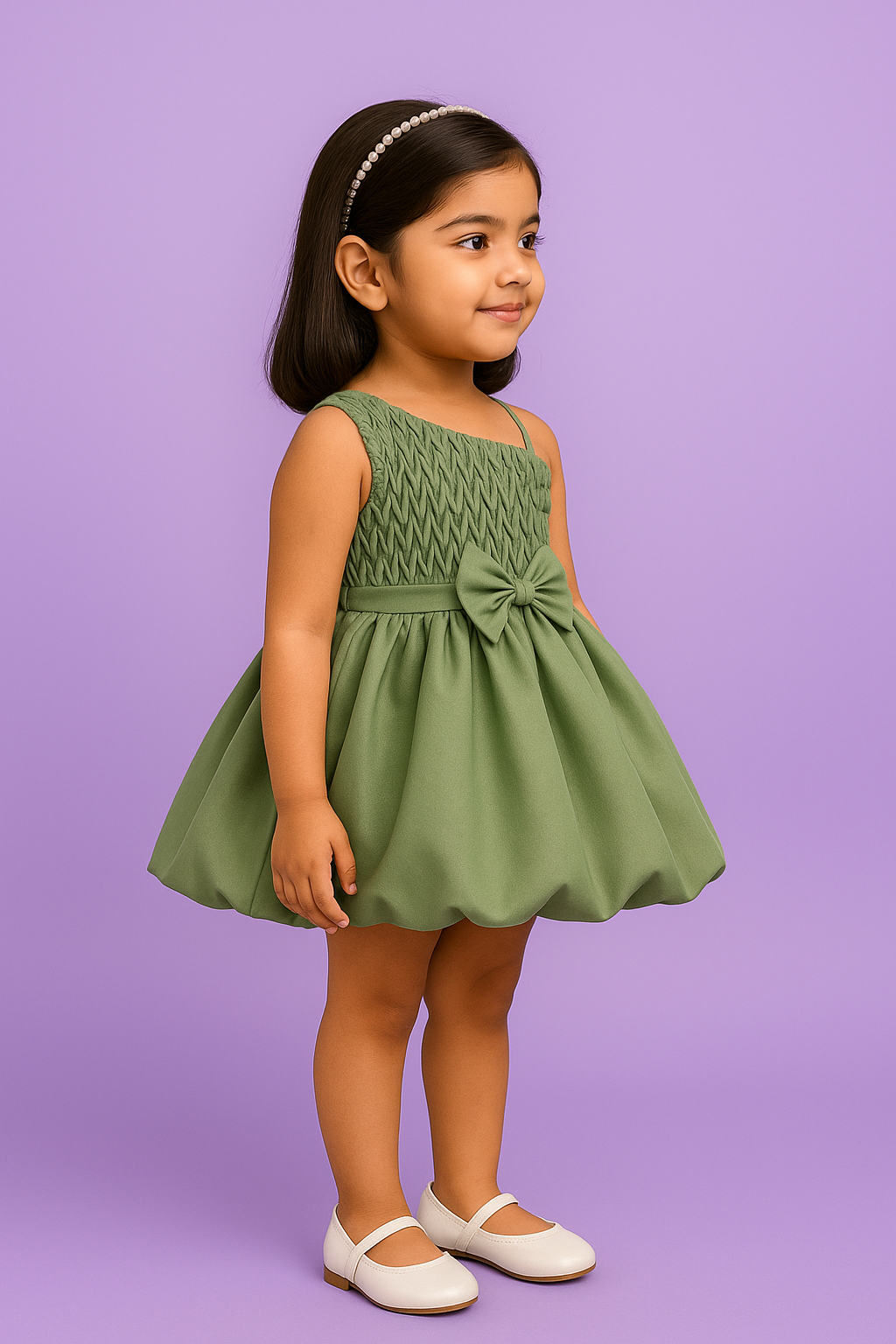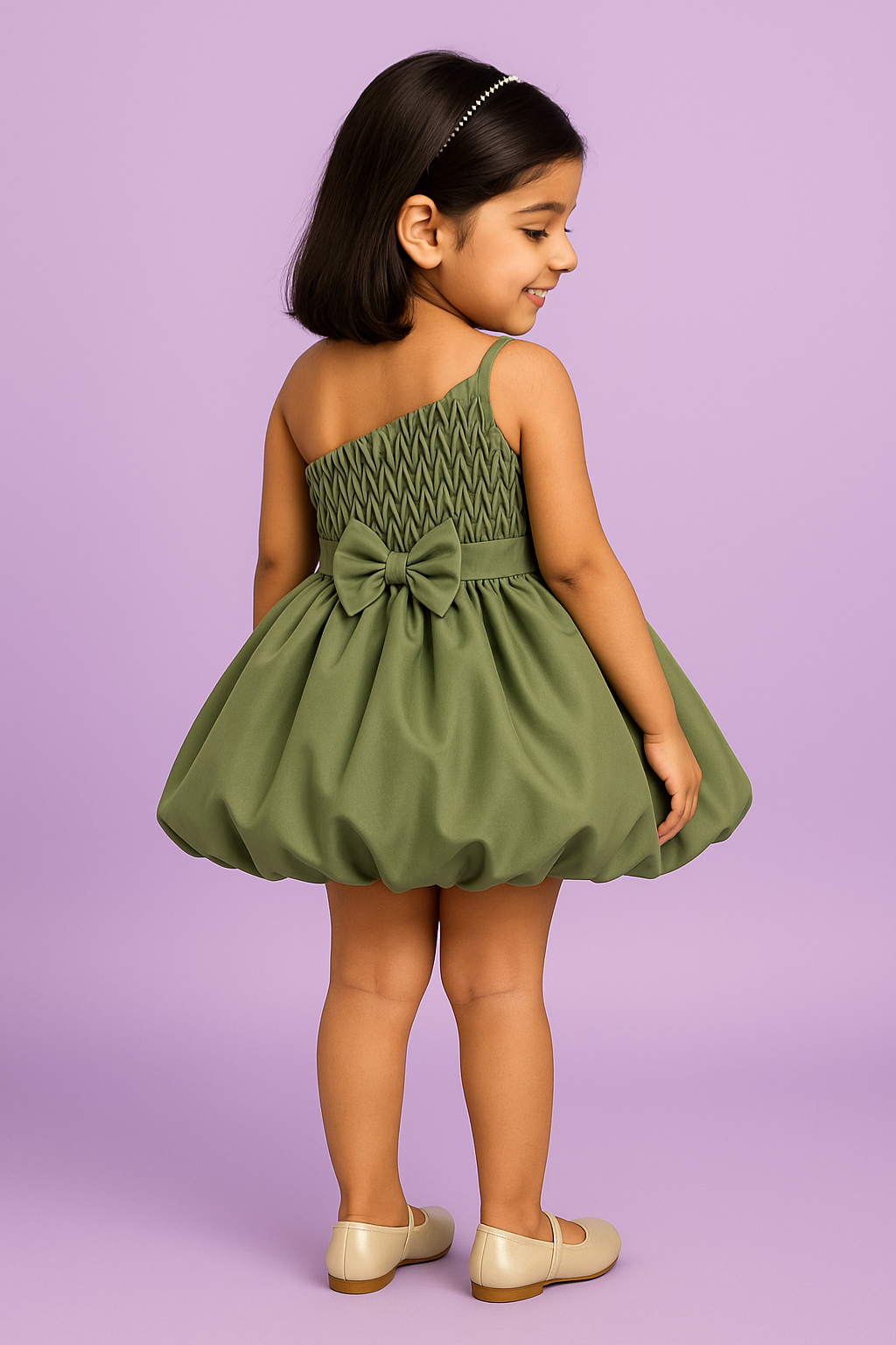 - Pattern: Elegant Solid-Colored Frock with Flared Bubble Skirt & Stylish Back Bow
