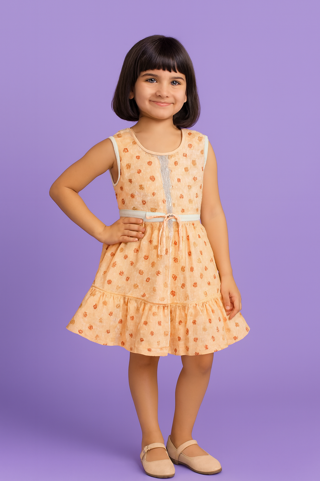 Light Orange Polka Dot Cotton Party Frock for Girls