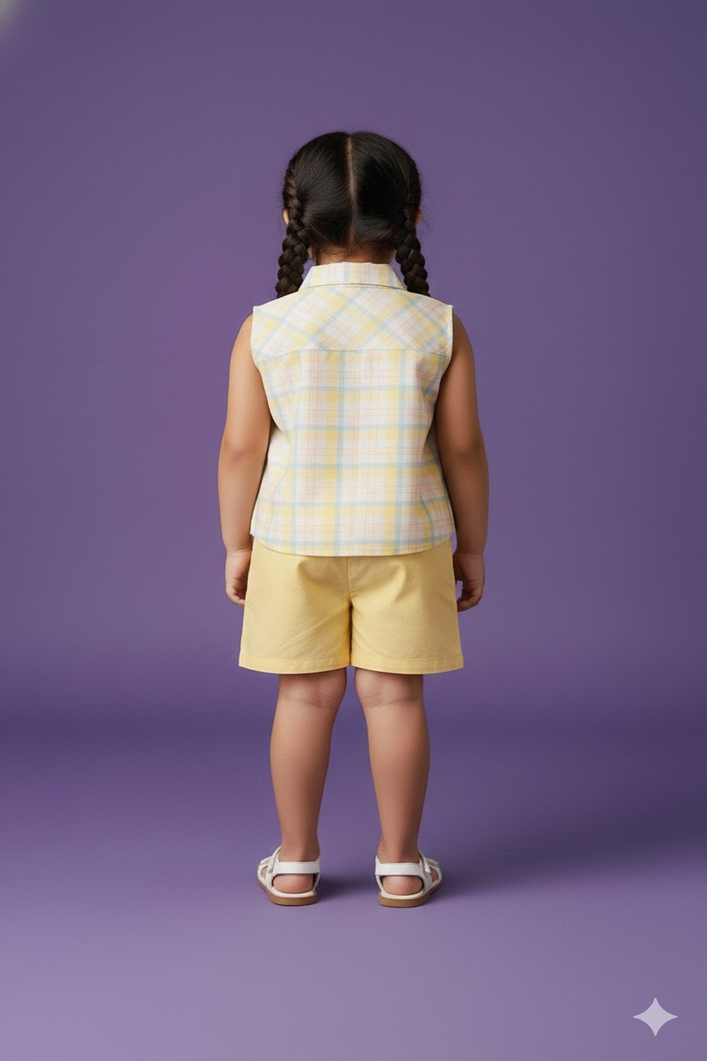 - Pattern:- Checked Sleeveless Top with Printed Shorts